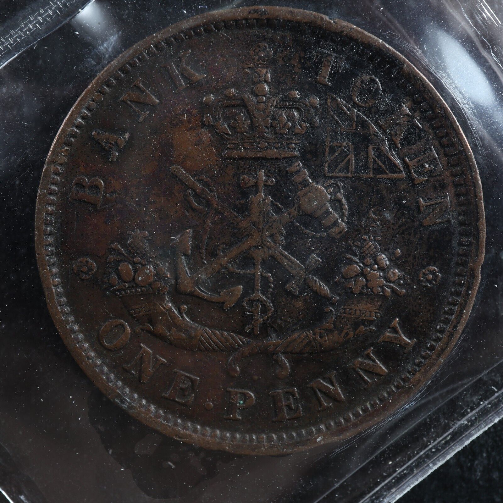PC-6A2 ICCS VF-30 One Penny 1850 dot token Bank of Upper Canada Breton 719