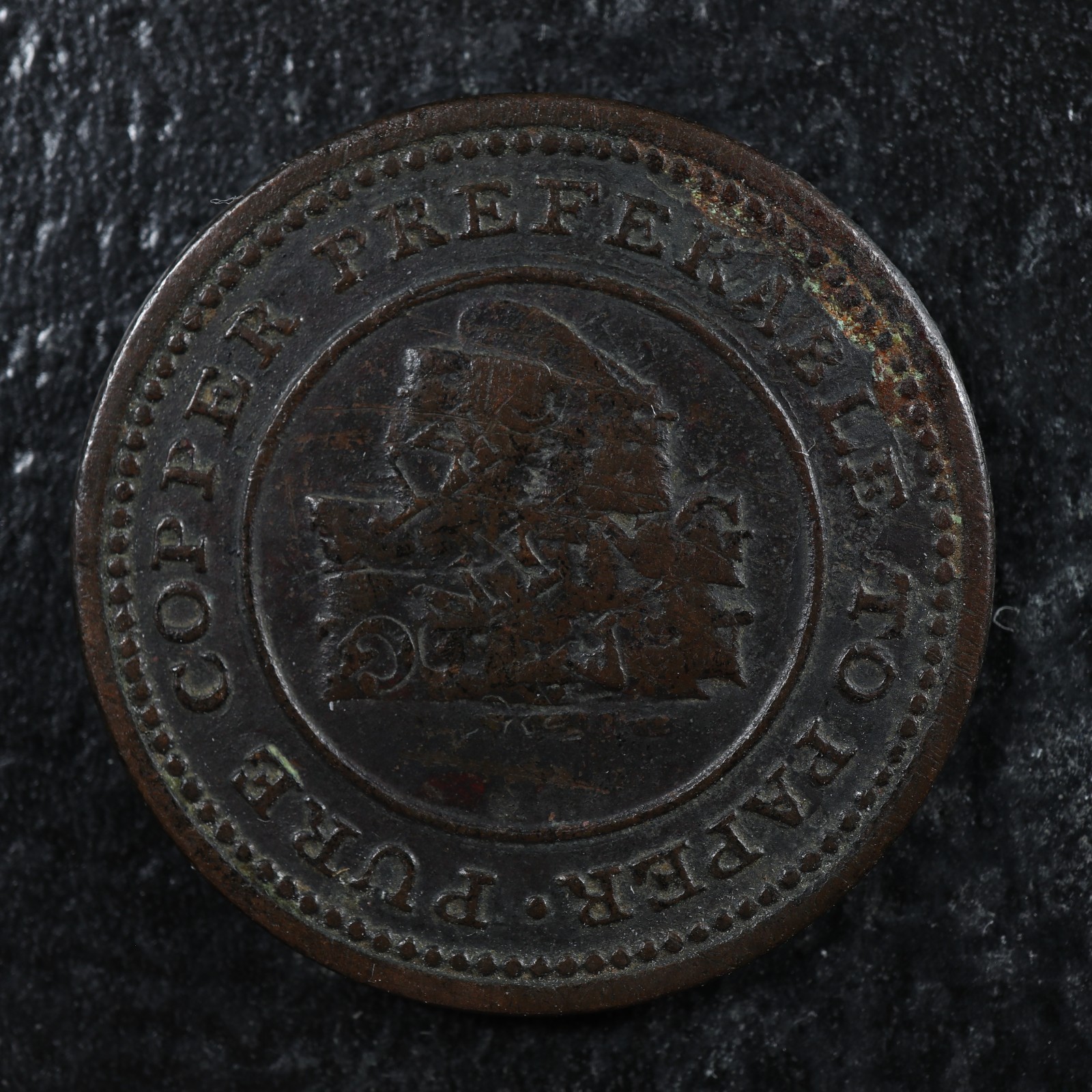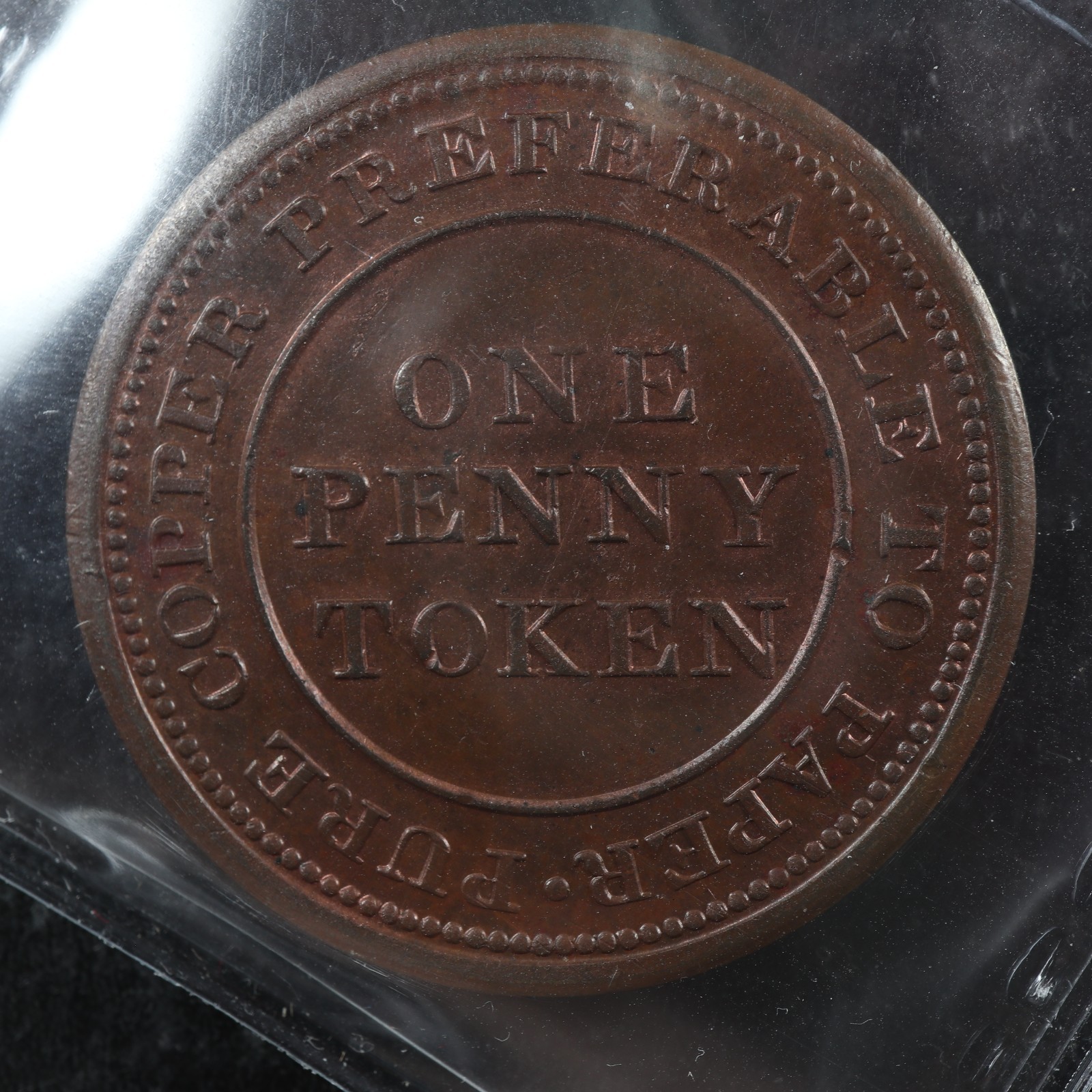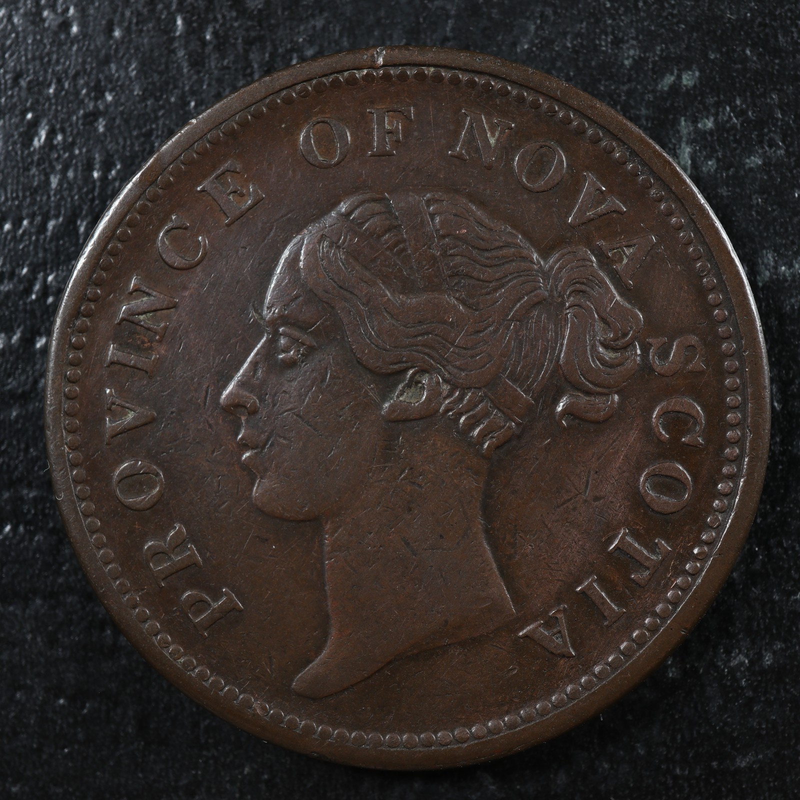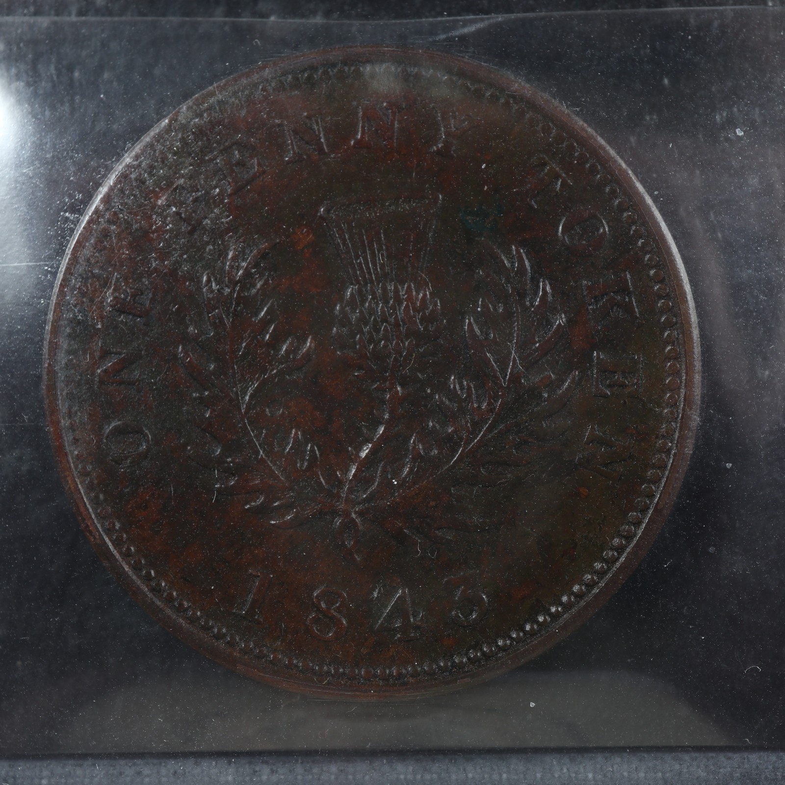 NS-2D1 ICCS EF-45 One Penny token 1843 Canada Nova Scotia Thistle Breton 873