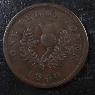 NS-2C2 One Penny token 1840 Canada Nova Scotia Thistle 5 fringes Breton 873