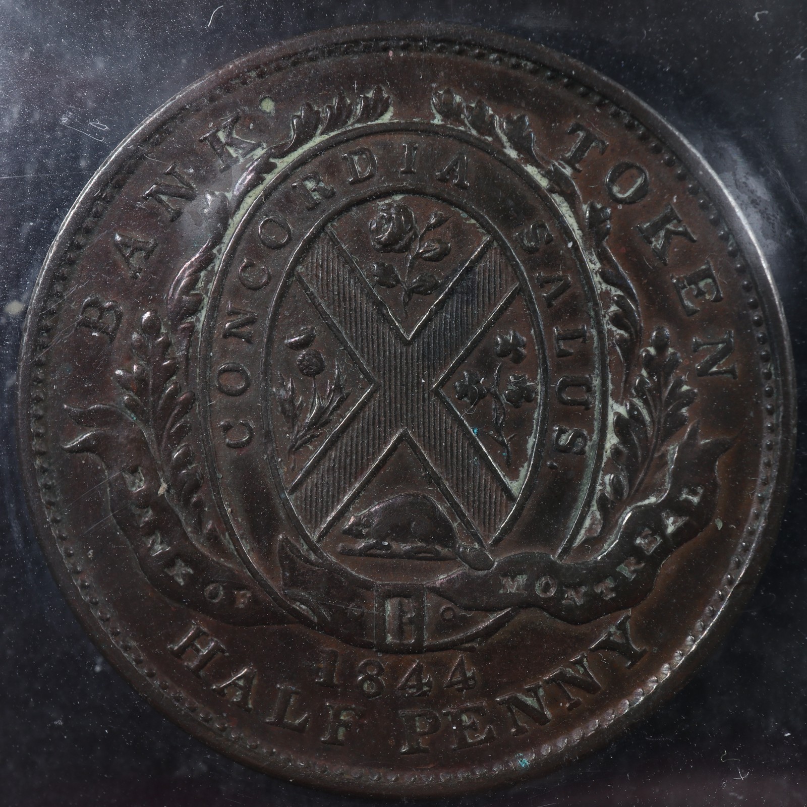 PC-1B5 ICCS AU-55 Halfpenny 1844 token Province of du Canada Montreal Breton 527