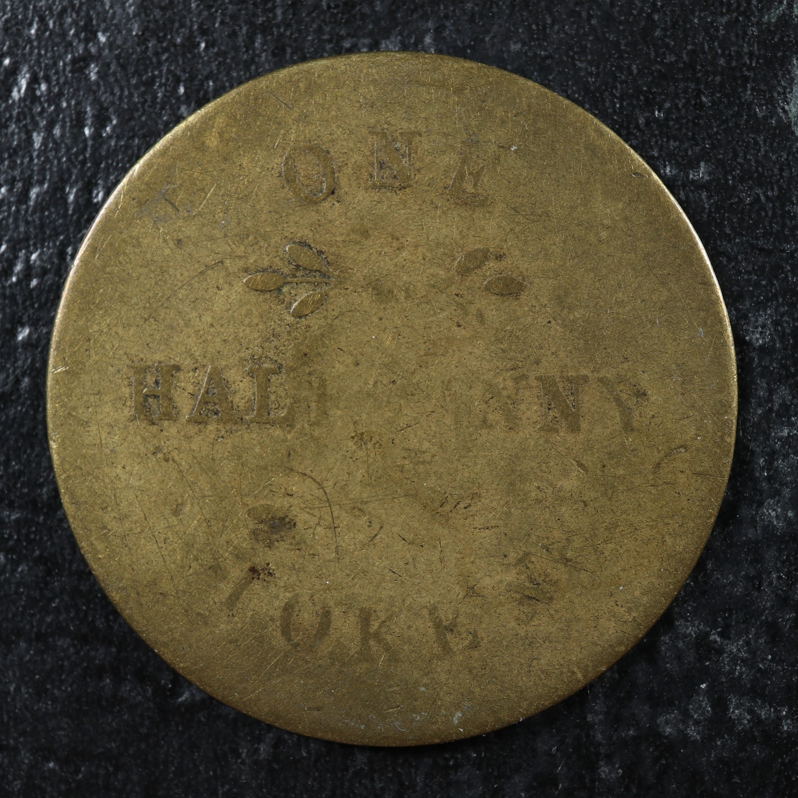 LC-54A Halfpenny token 1813 Lower Bas Canada Quebec Overstruck Breton 994