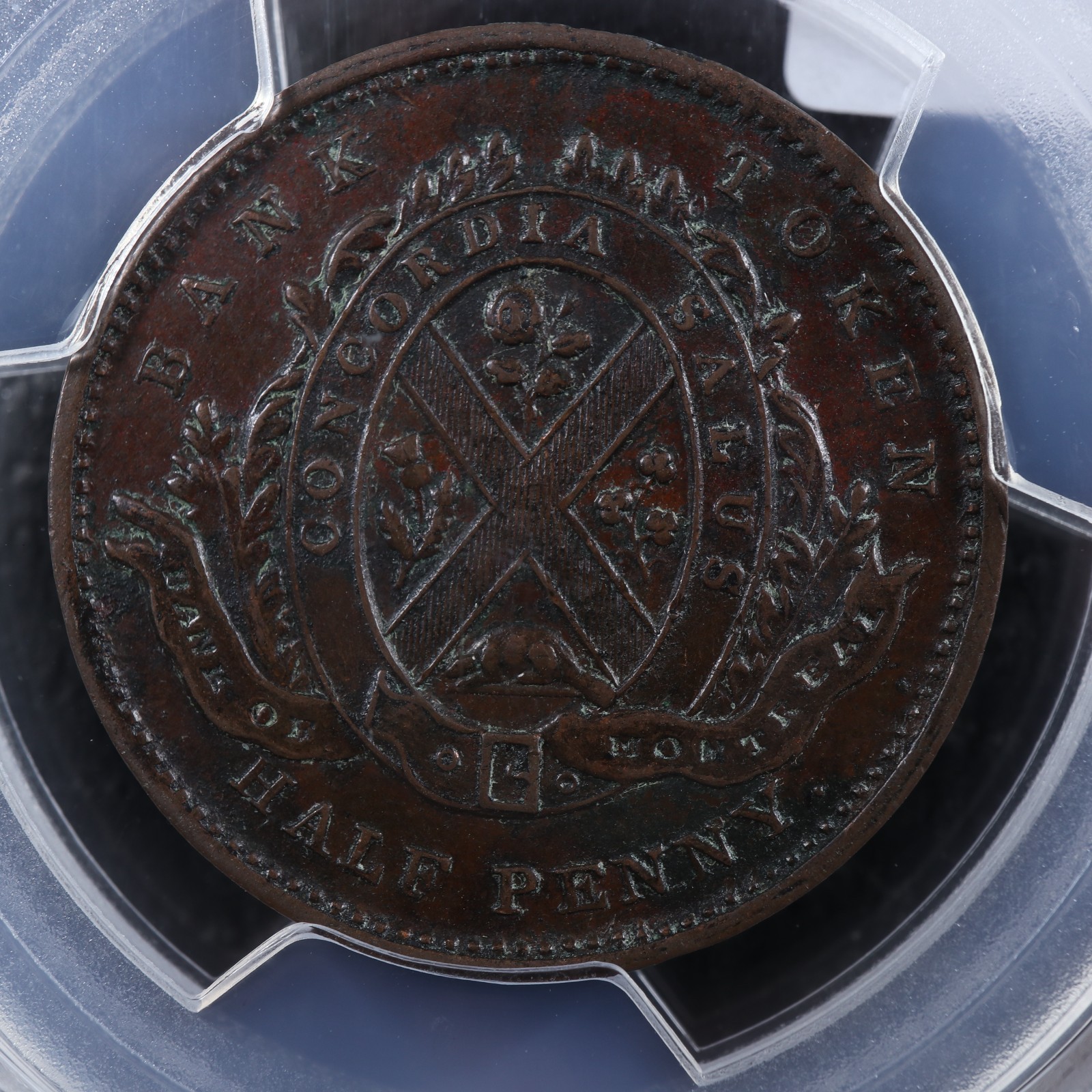 LC-10B1 PCGS AU details Halfpenny token 1839 Canada Sideview Montreal Breton 524
