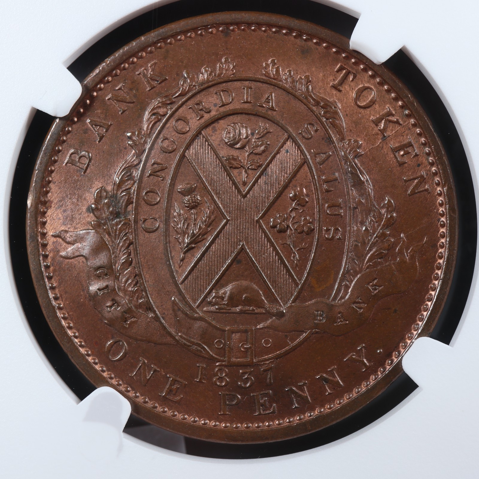 LC-9A3 NGC MS-63 One Penny token 1837 Lower Bas Canada City Bank Breton 521
