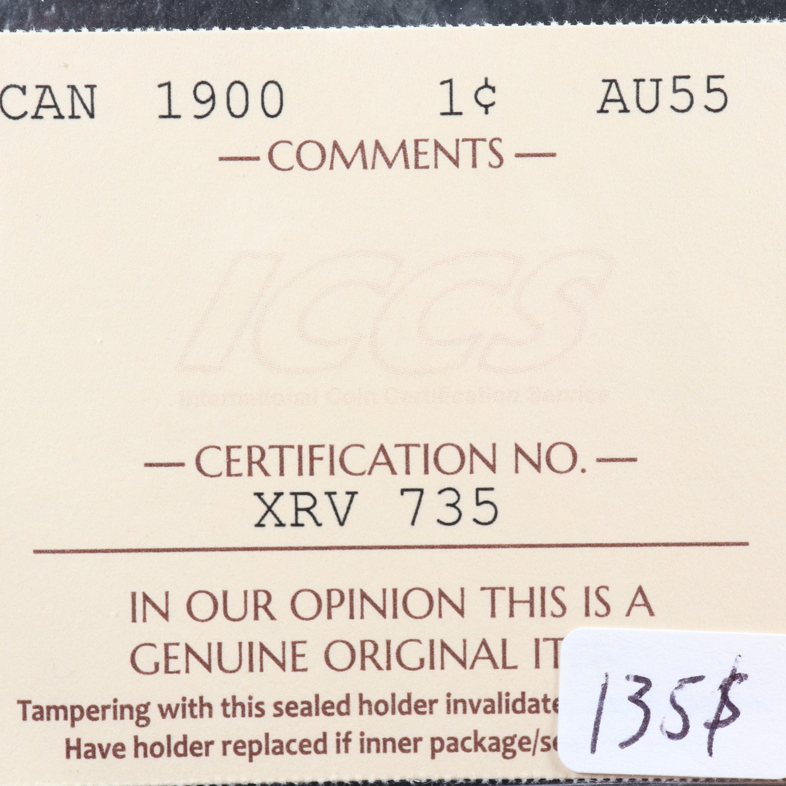 1 cent 1900 ICCS AU-55 Canada one large penny Queen Victoria c ¢