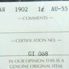 1 cent 1902 Canada ICCS AU-55 one large penny c ¢