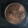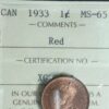 1 cent 1933 Canada ICCS MS-65 Red one small penny copper King George V c ¢