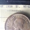 1 dollar 1958 Canada ICCS MS-64 one large silver coin queen Elizabeth II d $