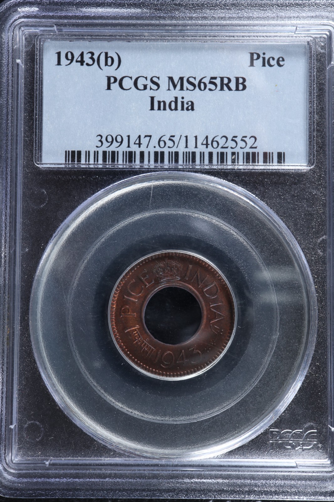 1 pice 1943(b) British India KM#533 PCGS MS-65 RB Copper Inde भारत quantity