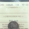 10 cents 1882H Canada ICCS VF-20 Queen Victoria silver c ¢ dime