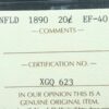 20 cents 1890 Newfoundland ICCS EF-40 Canada Queen Victoria c ¢ NFLD