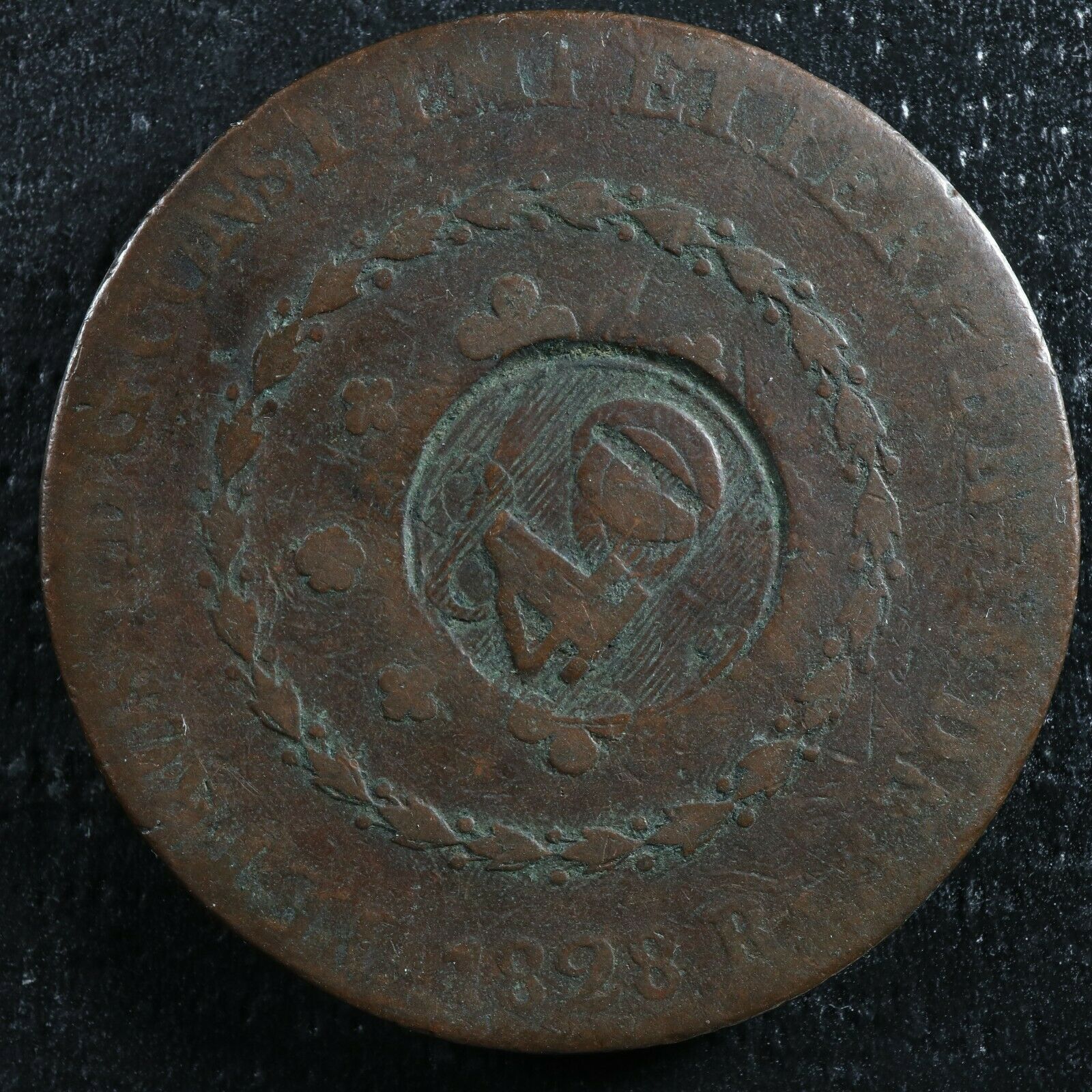 40 Reis counterstamp on a 80 Reis 1828R Brazil KM#444.1 Copper Brézil Brasil