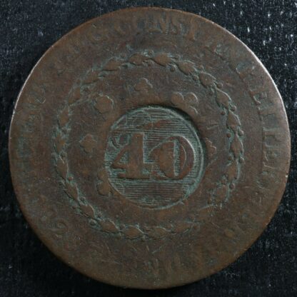 40 Reis counterstamp on a 80 Reis Brazil 1830R KM#444.1 Copper Brézil Brasil
