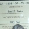 5 cents 1858 Canada ICCS VF-30 silver coin c ¢ Queen Victoria half-dime