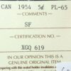 5 cents 1954 SF Canada ICCS PL-65 Nickel coin c ¢ Queen Elizabeth II half-dime