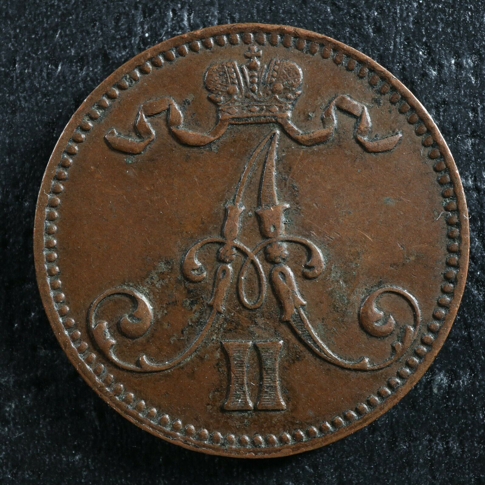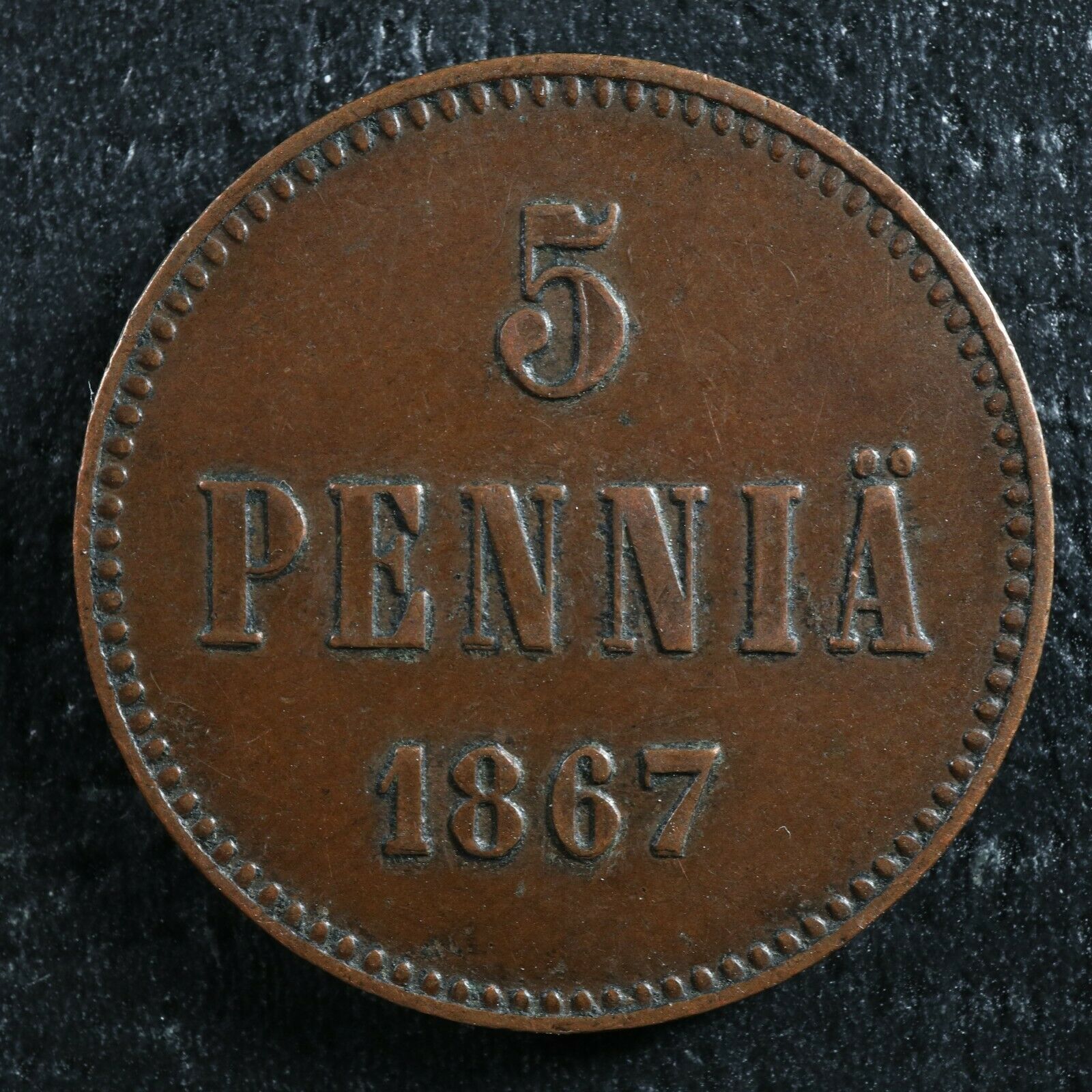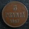 5 penniä 1867 Finland KM#4.1 Copper Finlande Suomi pennia