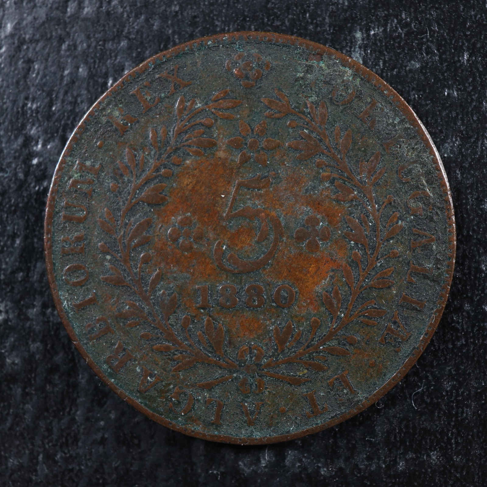 5 reis 1880 Azores Portugal KM#13 Copper Açores quantity