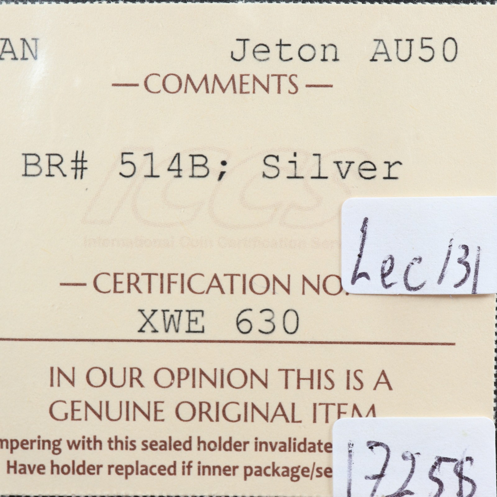 Breton 514 ICCS AU-50 1754 Franco-American original jeton silver token Beaver quantity