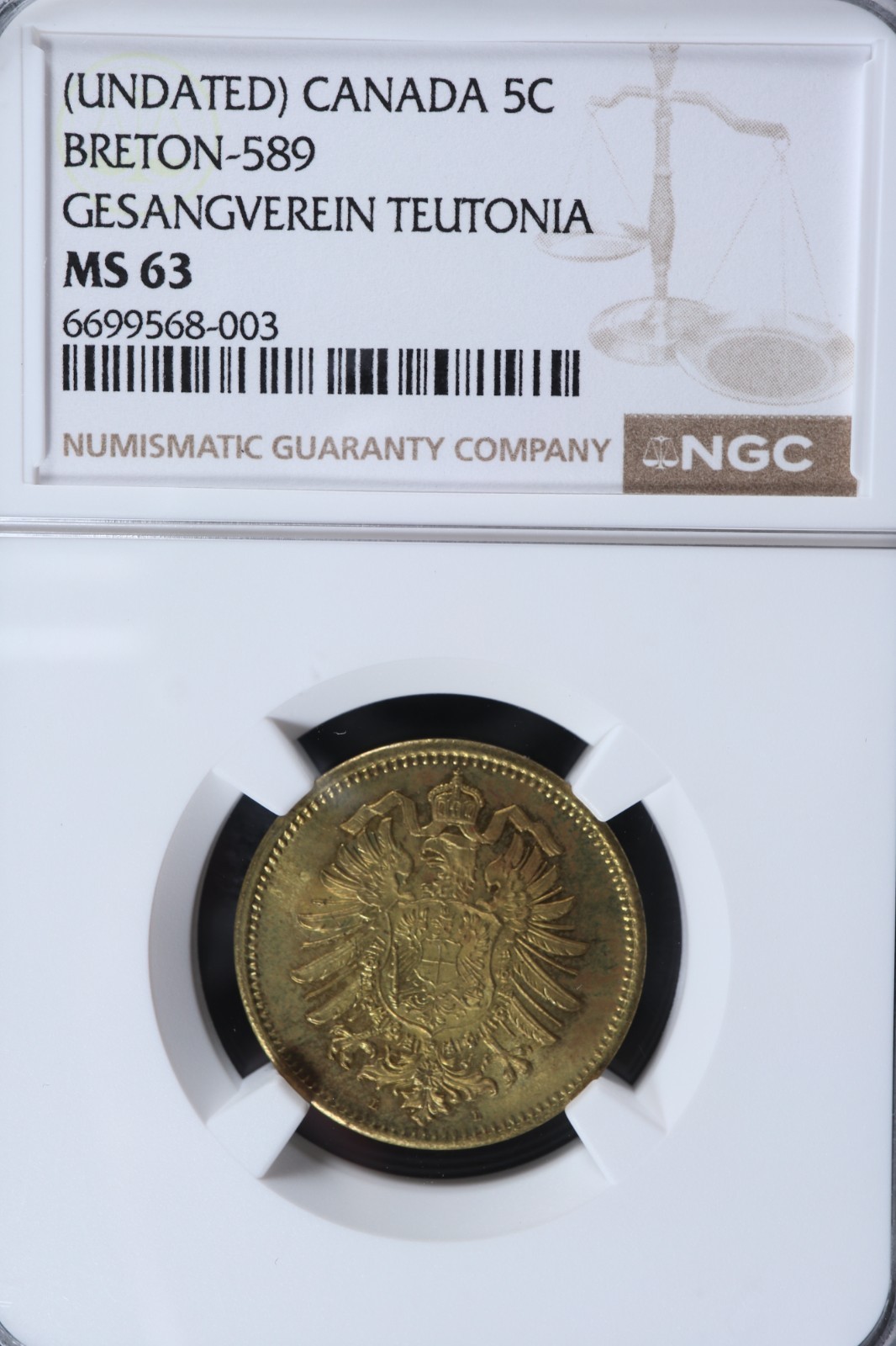 Breton 589 NGC MS-63 5 cents token Gesangverein Teutonia Montreal Quebec Canada quantity