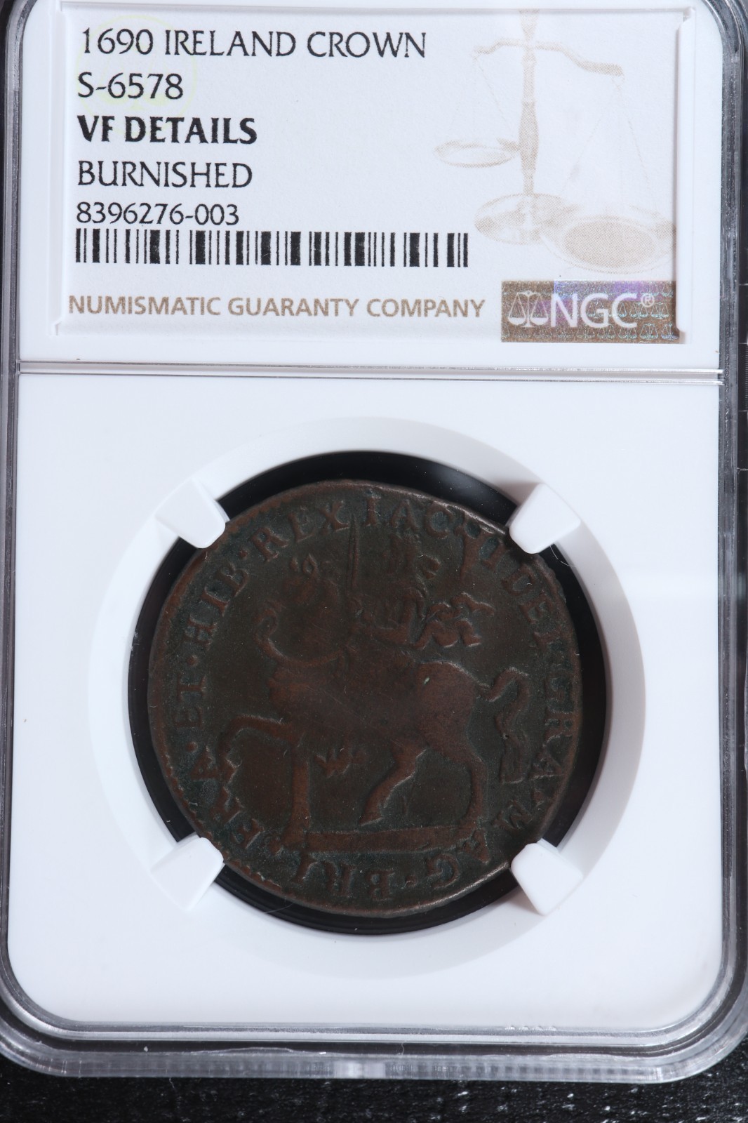 Crown 1690 Dublin mint Ireland KM#103 NGC VF details Gun Money Irlande Éire quantity
