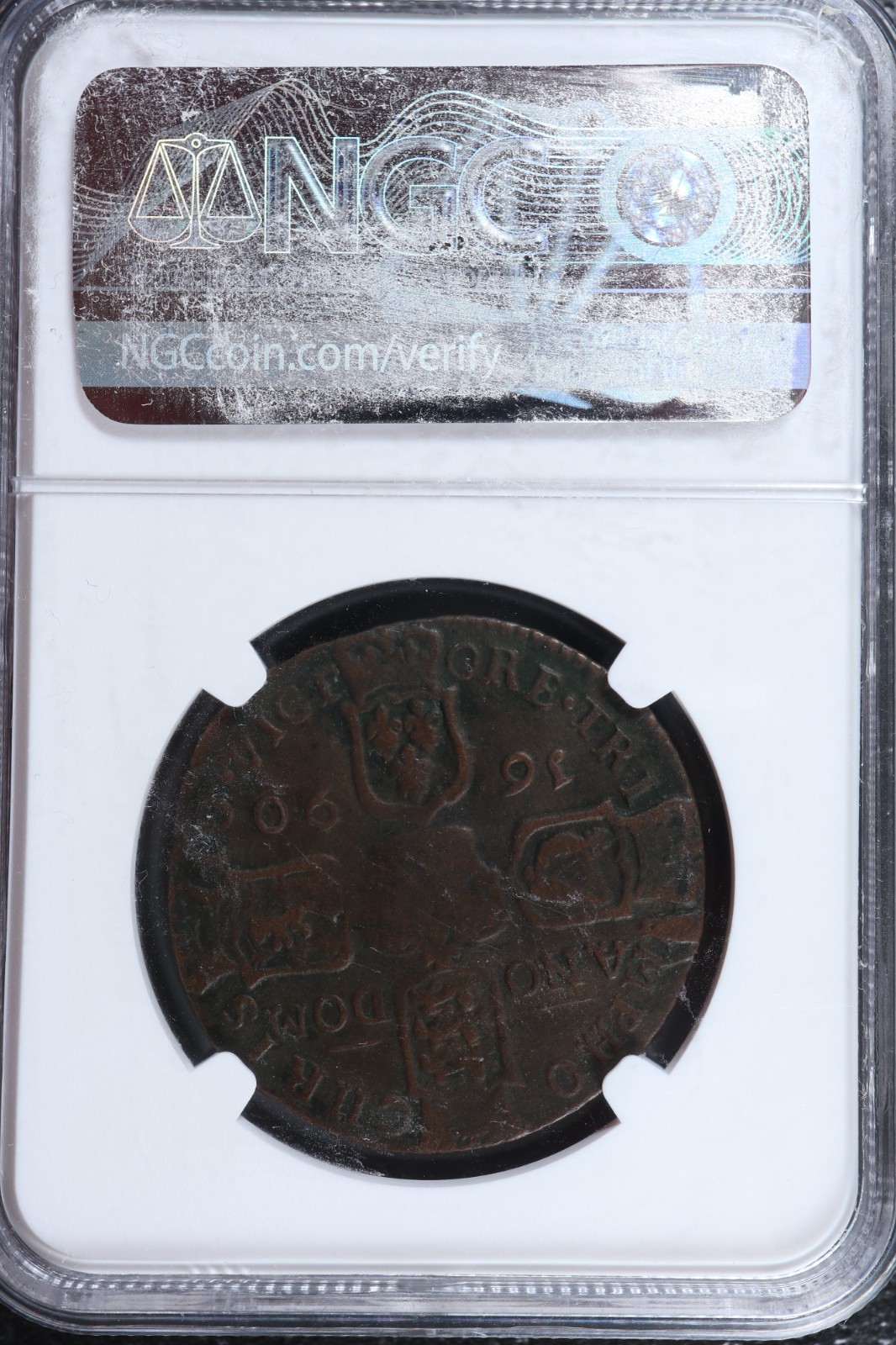 Graded by NGC VF details, burnished. Sticky back of slab a bit.