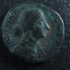 Obv.: FAVSTINA AVGVSTA, Bust of Faustina II, draped, double row of pearls, hair elaborately waved in nearly vertical lines and fastened in a low chignon at back of head round head, down cheek, curls, right.