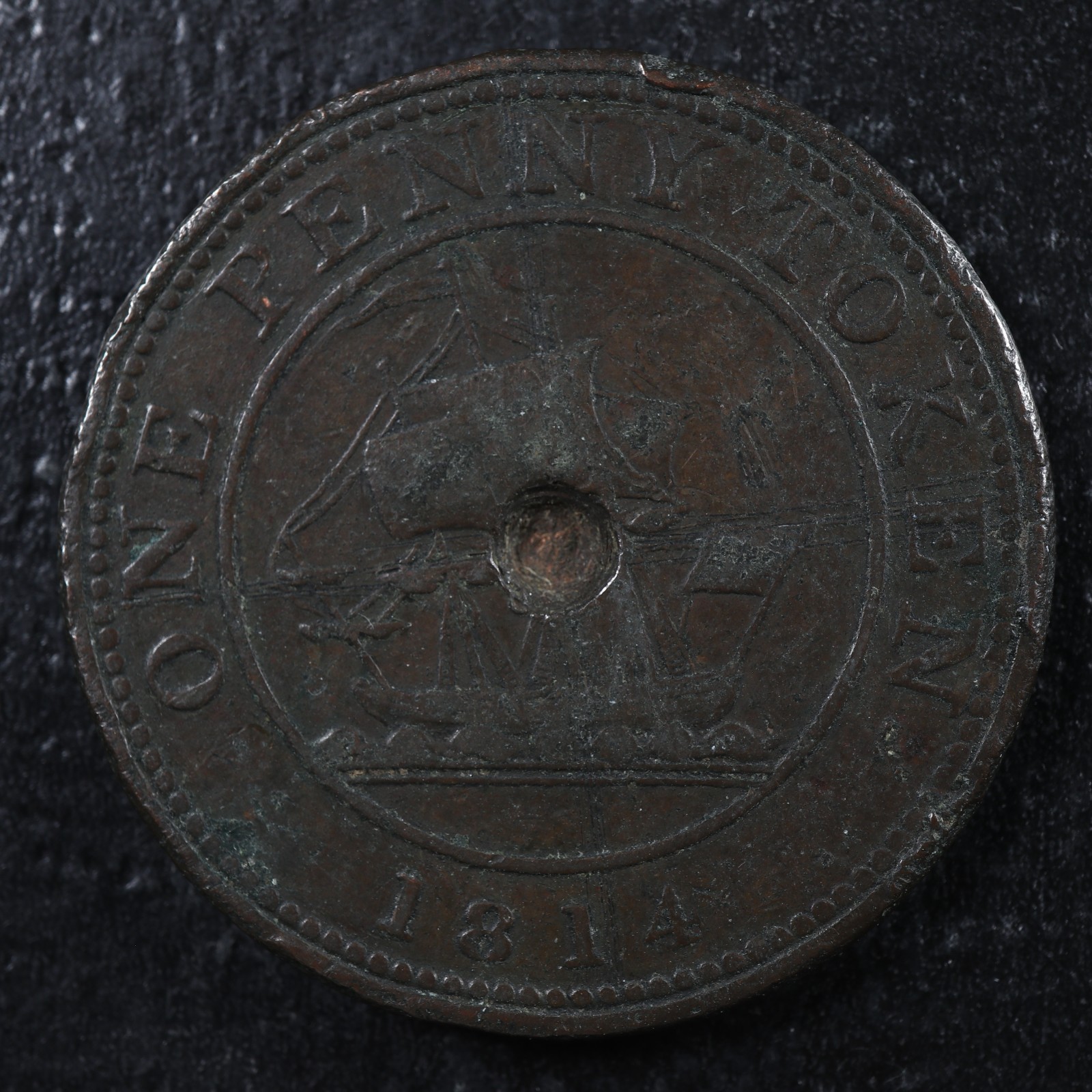 LC-52 One Penny token 1814 Lower Canada RH Richard Hurd ship Breton 989