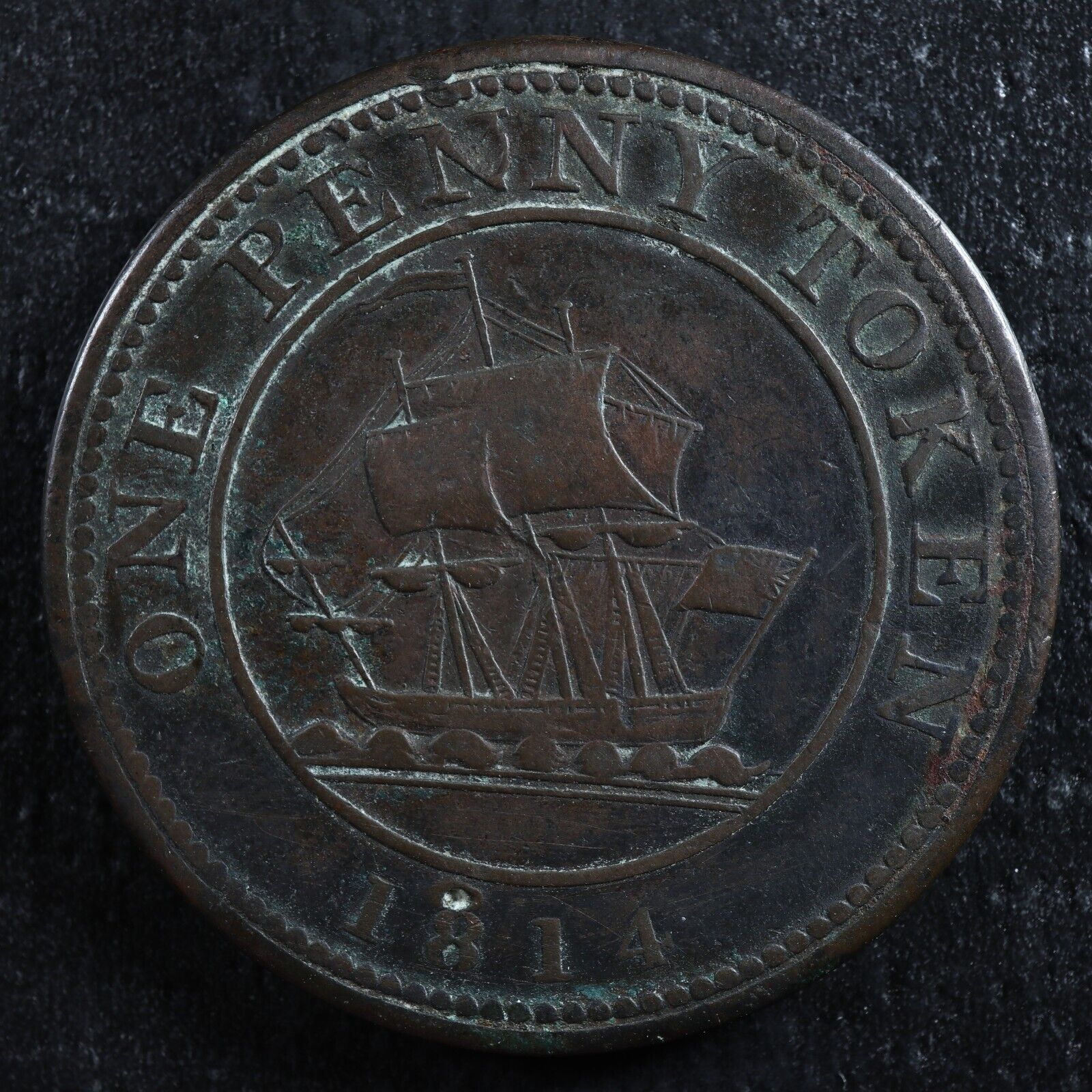 LC-52 One Penny token 1814 Lower Canada RH Richard Hurd ship Breton 989