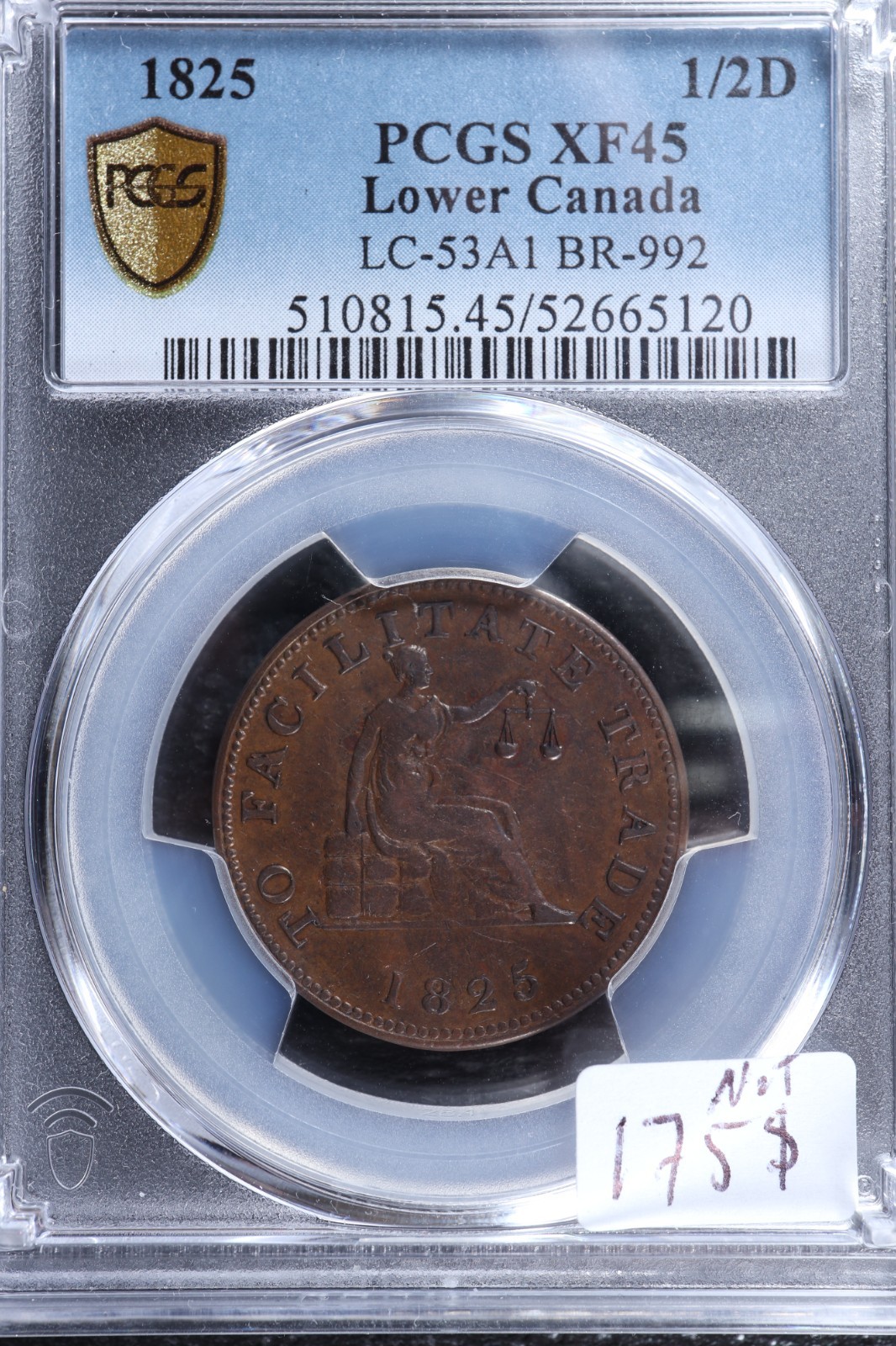 LC-53A1 PCGS EF-45 1825 token To facilitate trade Lower Canada Quebec Breton 992