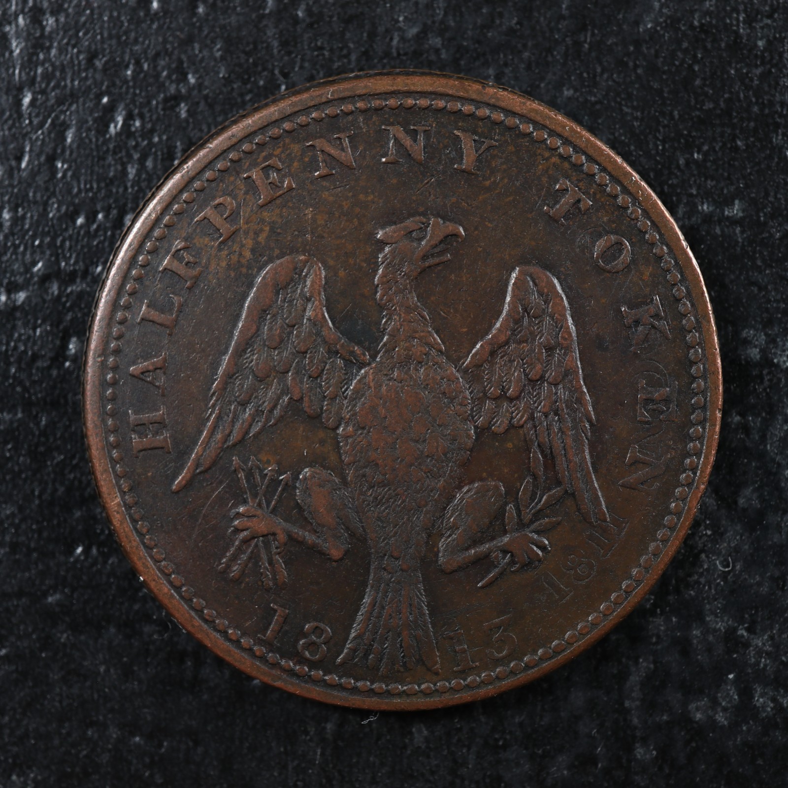 LC-54A Halfpenny token 1813 Lower Bas Canada Quebec Overstruck Breton 994