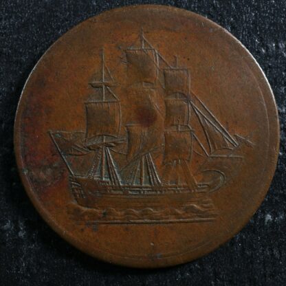 LC-56B1 Halfpenny token 1815 Lower Bas Canada Quebec Ship Breton 1004