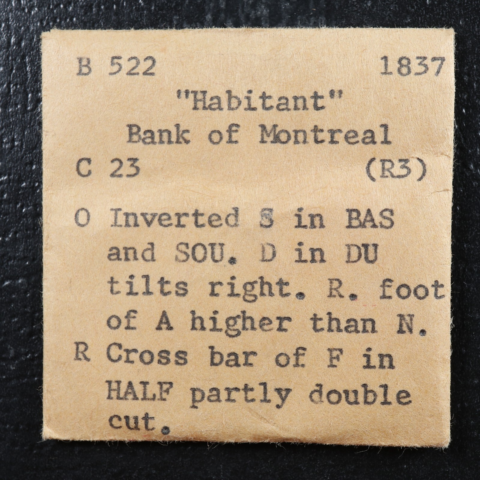 LC-8D1 Halfpenny token Un sou 1837 Lower Bas Canada Bank of Montreal Breton 522