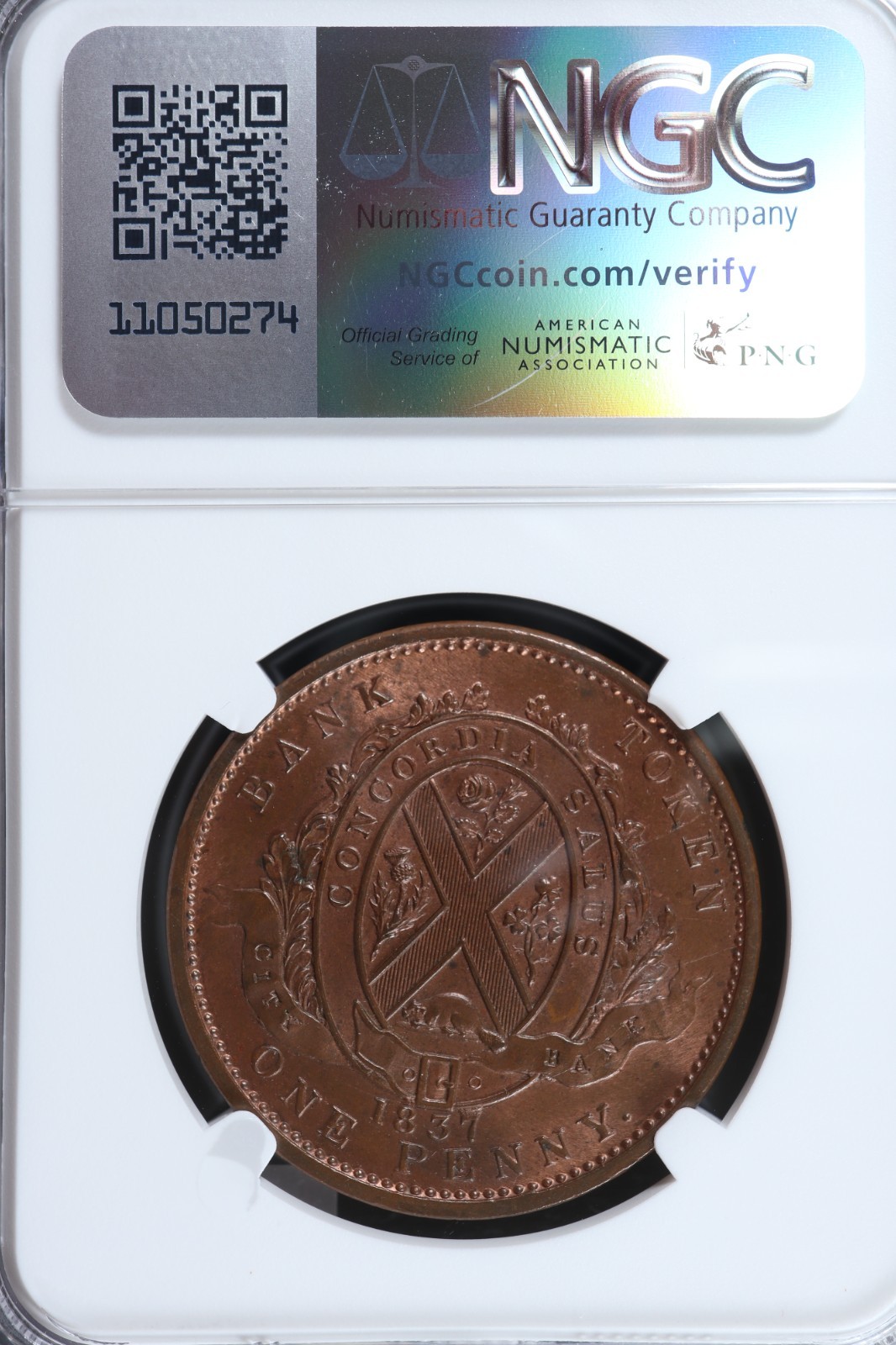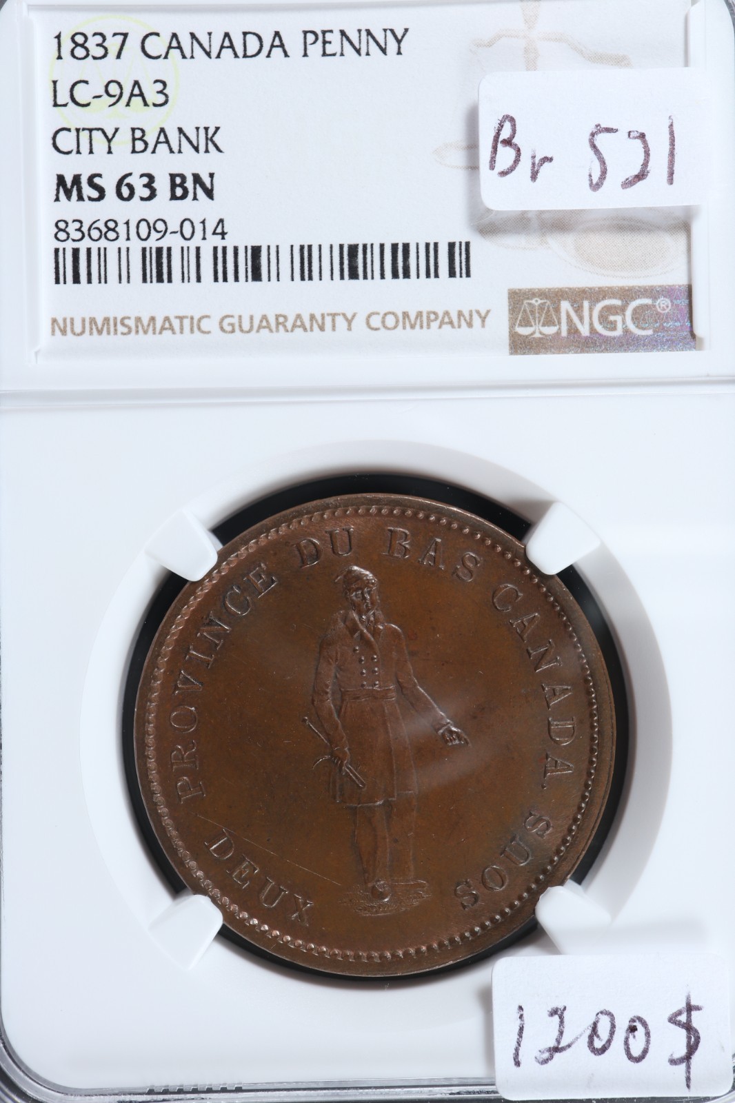 LC-9A3 NGC MS-63 One Penny token 1837 Lower Bas Canada City Bank Breton 521 quantity