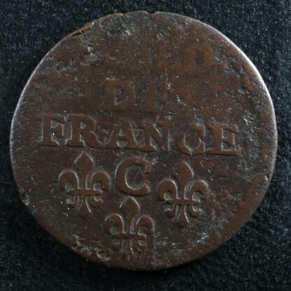 Liard de France au buste juvénile 1655C Caen KM#192 Copper King Roi Louis XIV