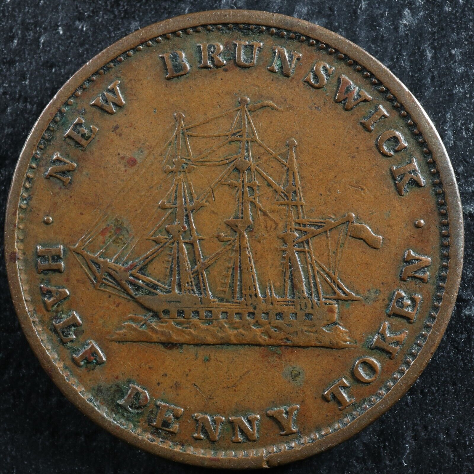 NB-1A2 Halfpenny token 1843 Canada Nouveau New Brunswick Ship Breton 910