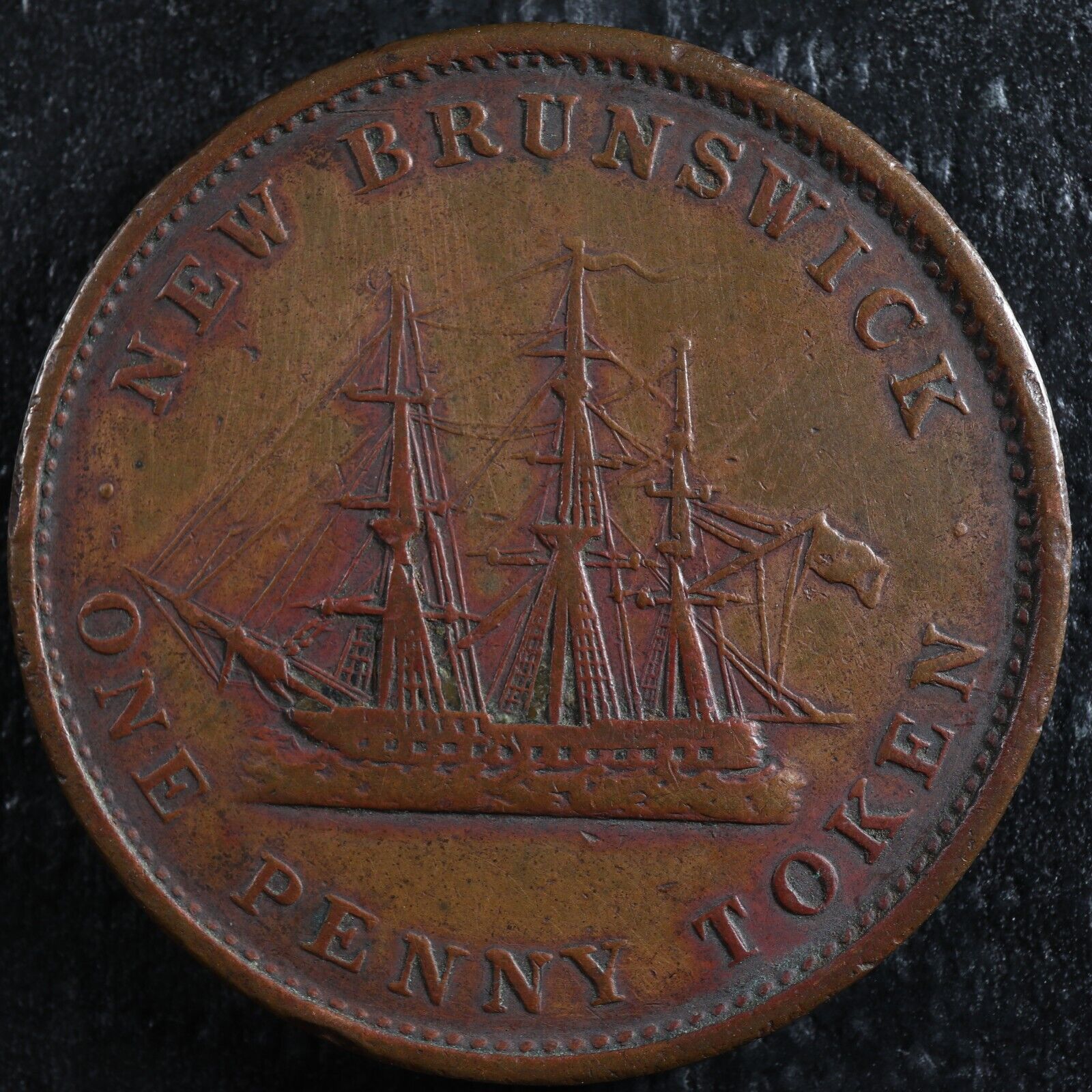NB-2A One penny token 1843 Canada Nouveau New Brunswick Ship Breton 909
