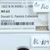 NC-1D4 NGC MS-63 1/16 Dollar 1822 BWI XVI Silver Anchor money Canada Breton 860