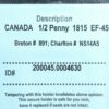 NS-14A5 CCCS EF-45 Halfpenny Token 1815 Nova Scotia Canada Halifax Breton 891