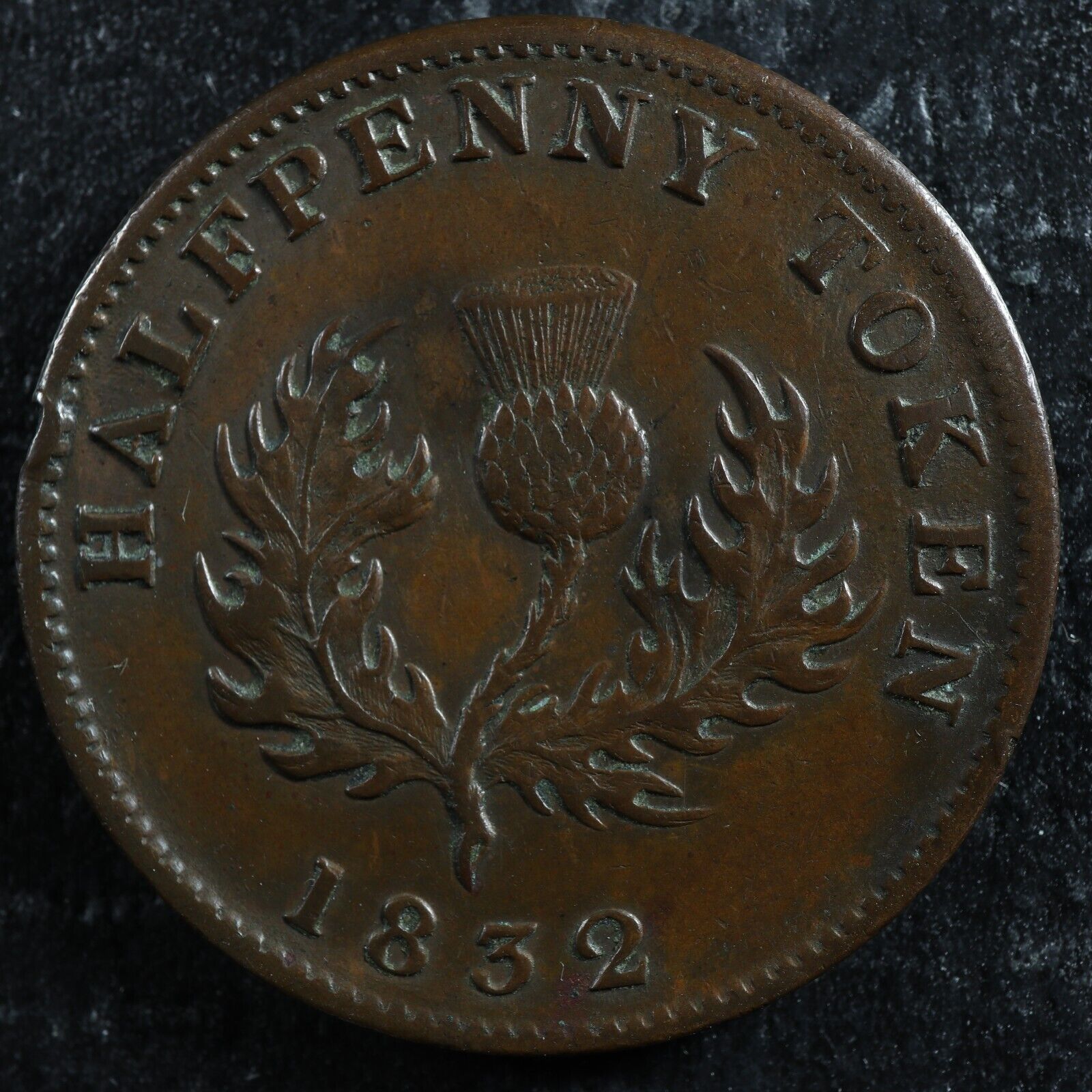NS-1D3 Halfpenny token 1832 Nova Scotia Canada Thistle Breton 871