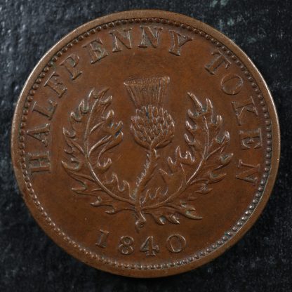 NS-1E2 Halfpenny token 1840 Medium 0 Nova Scotia Canada Thistle Breton 874