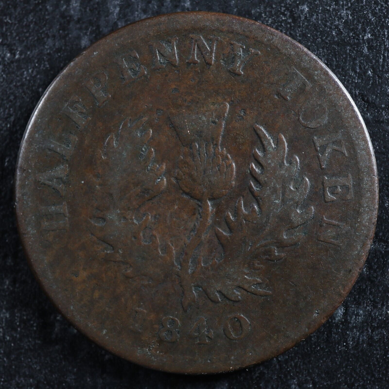 NS-1E2 Halfpenny token 1840 Nova Scotia Canada Thistle Breton 874