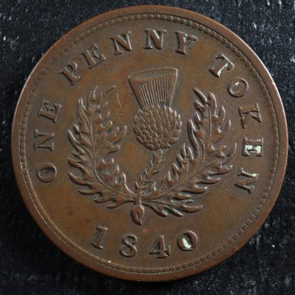 NS-2C1 One Penny token 1840 Canada Nova Scotia Thistle 7 fringes Breton 873