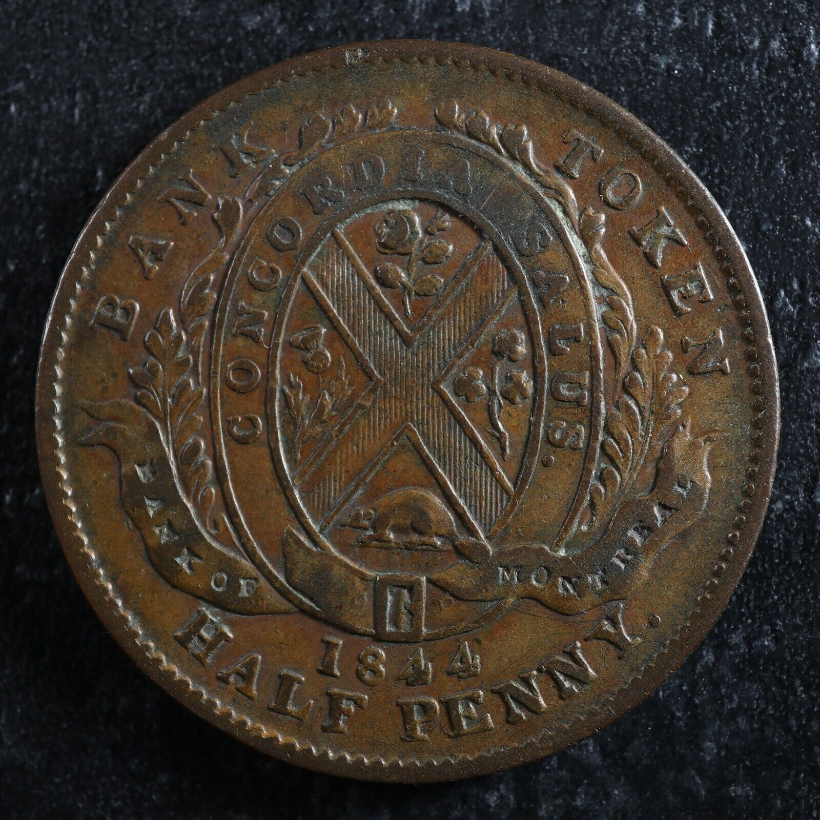 PC-1B1 Halfpenny 1844 token Province of du Canada Montreal Quebec Breton 527