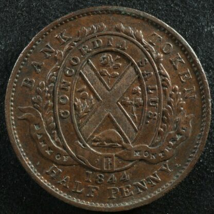 PC-1B1 Halfpenny 1844 token Province of du Canada Montreal Quebec Breton 527