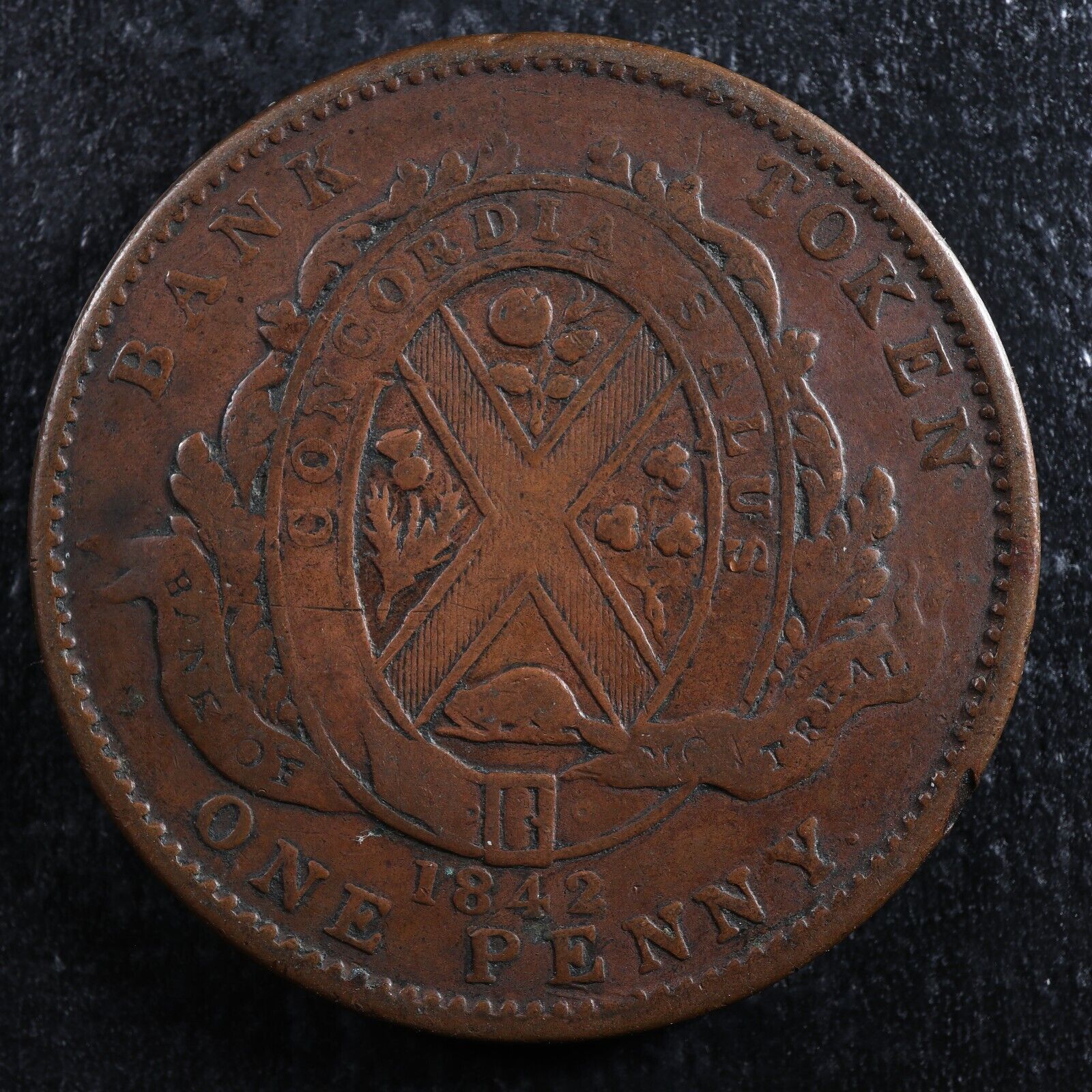 PC-2B One penny token 1842 Province of Canada Bank of Montreal Co 72 Breton 526