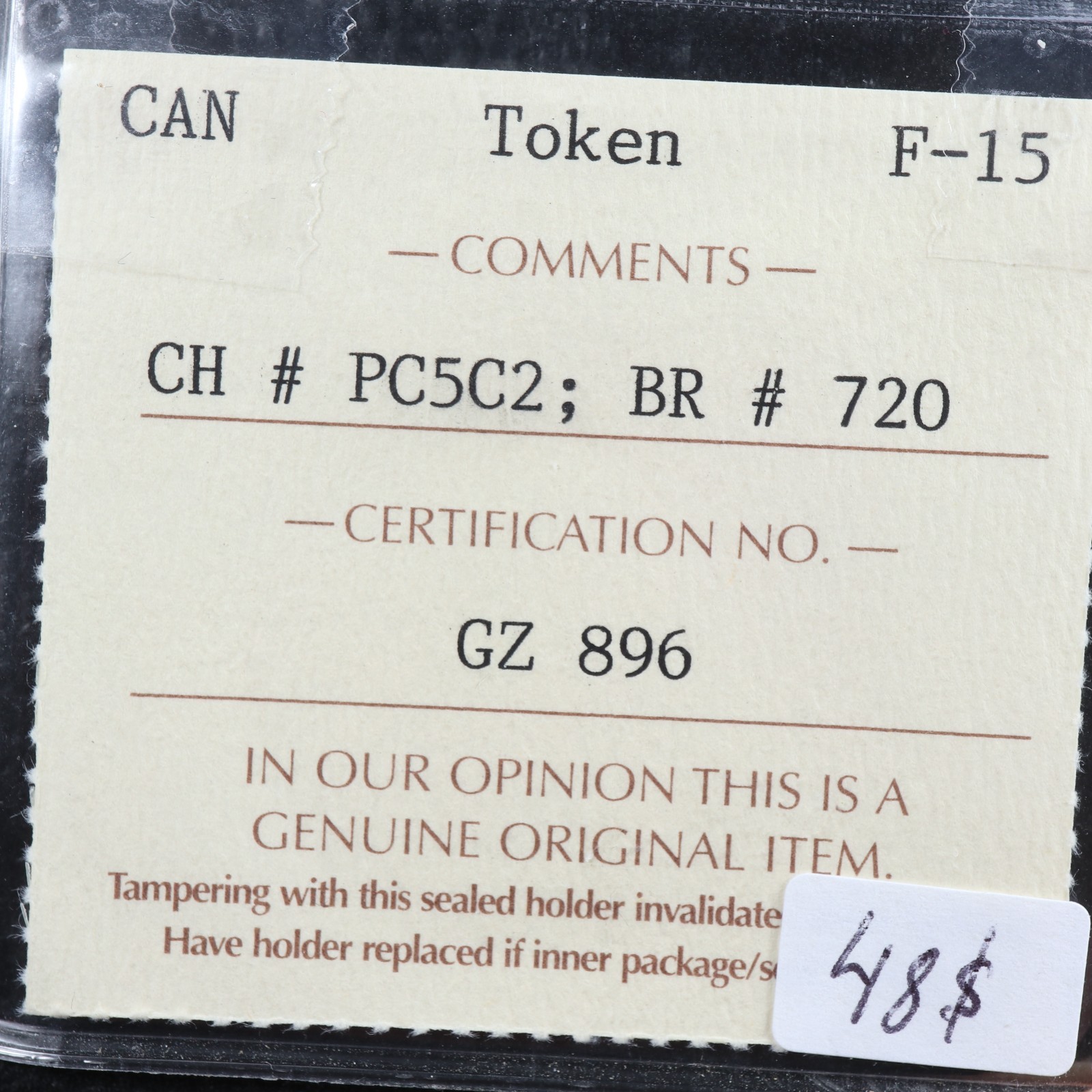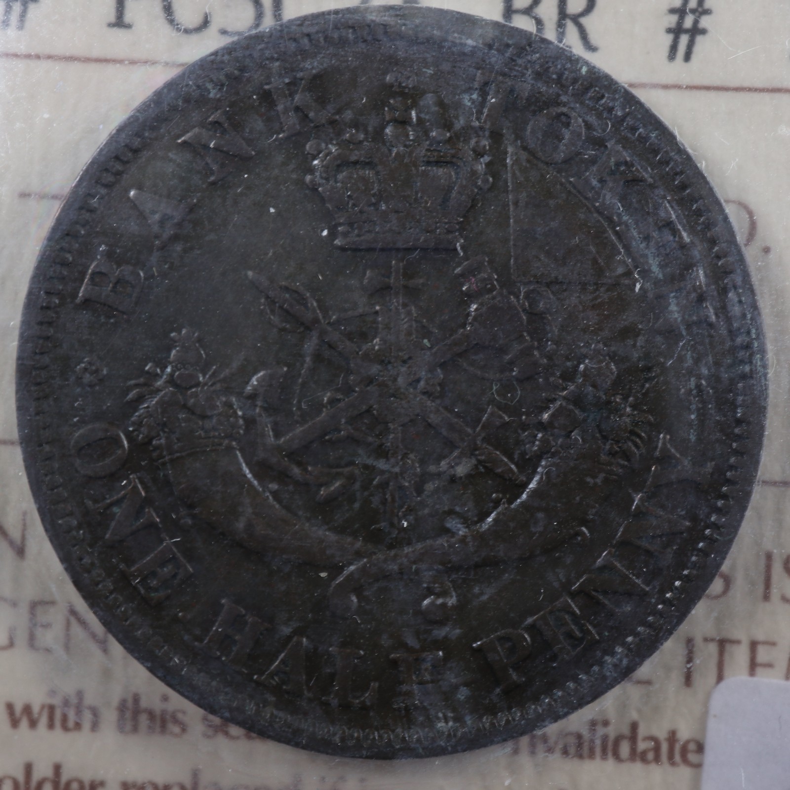 PC-5C2 ICCS F-15 Halfpenny 1854 token Crosslet “4” Upper Canada Bank Breton 720