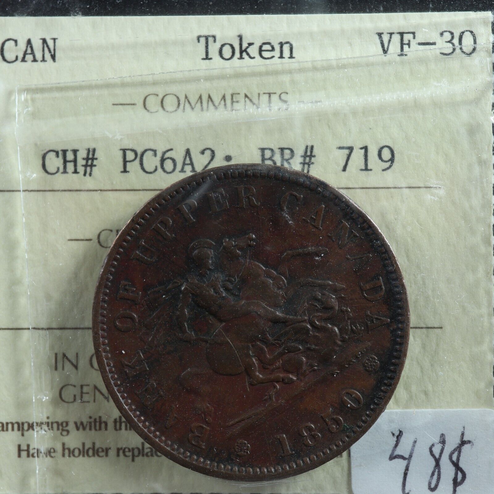 PC-6A2 ICCS VF-30 One Penny 1850 dot token Bank of Upper Canada Breton 719