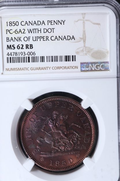 PC-6A2 NGC MS-62 RB One Penny 1850 dot token Bank of Upper Canada Breton 719