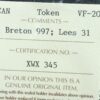 PE-10-31 ICCS VF-20 Ships Colonies & Commerce token PEI Canada Breton 997
