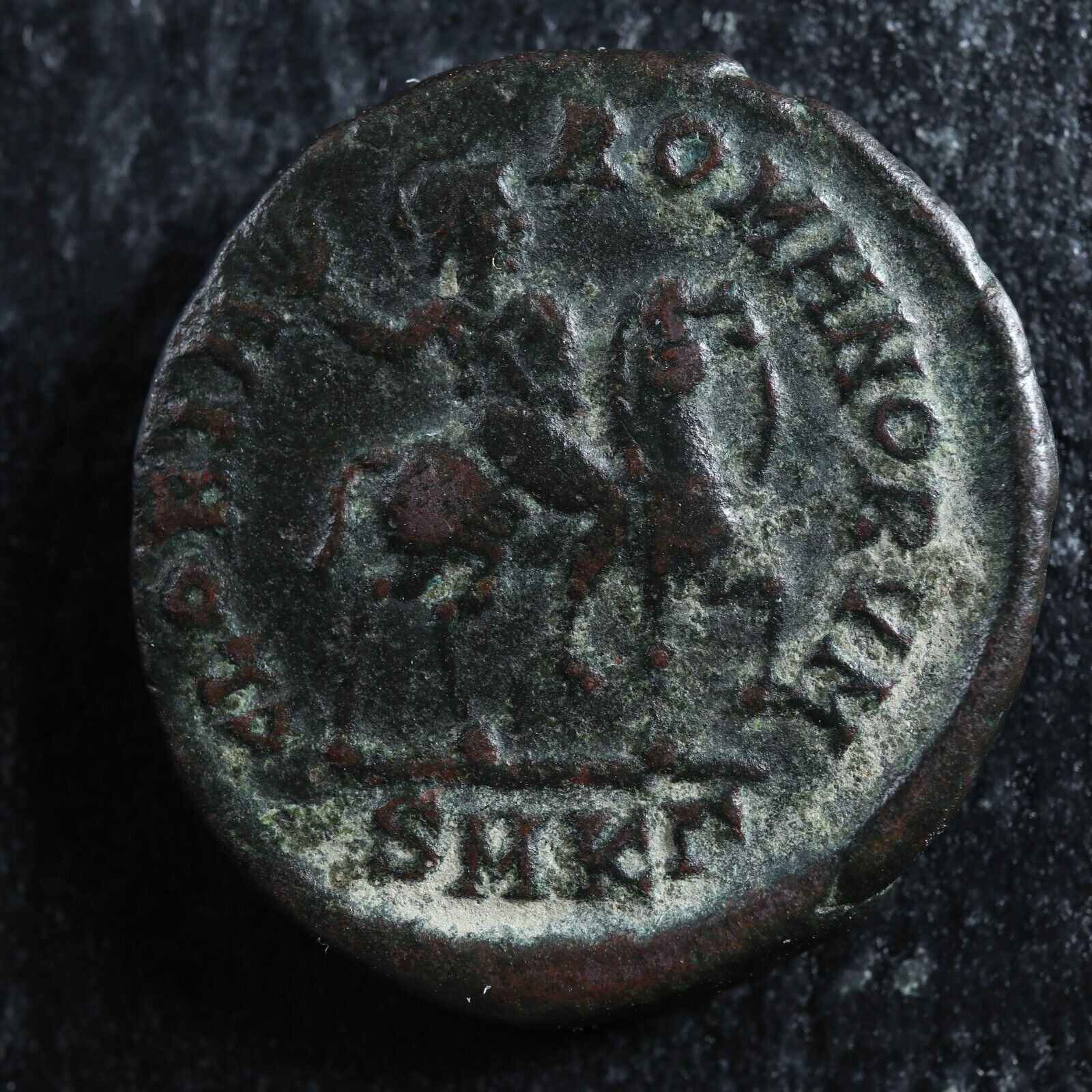 Rev.: GLORIA ROMANORVM  SMKΓ, Emperor on horseback, right, raising right hand.