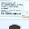 UC-10 NGC AU-53 Halfpenny token 1821 Upper Canada ship Breton 728